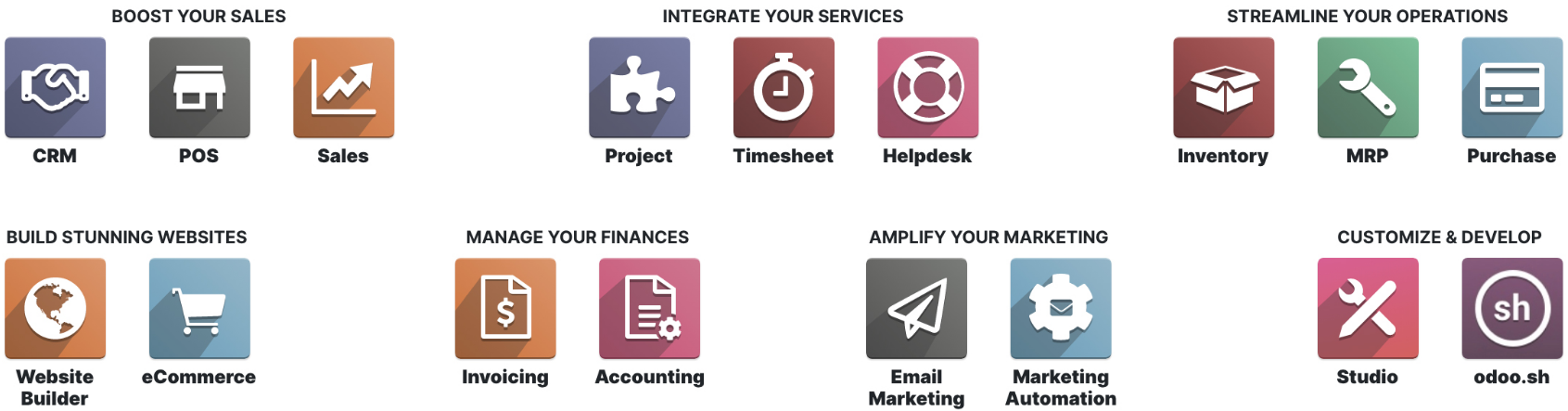 ระบบที่รวบรวมการจัดการทุกกระบวนการทางธุรกิจไว้ในแพลตฟอร์มเดียว ช่วยให้การทำงานของธุรกิจมีประสิทธิภาพและเป็นระบบมากขึ้น ไม่ว่าจะเป็นการจัดการการเงิน การขาย การซื้อ การผลิต คลังสินค้า หรือทรัพยากรบุคคล Odoo ERP มีความยืดหยุ่นสูงและสามารถปรับแต่งตามความต้องการของธุรกิจได้ง่าย นอกจากนี้ยังมีแอปพลิเคชันมากมายที่สามารถติดตั้งเพิ่มเติมได้ ทำให้ธุรกิจสามารถขยายขอบเขตการใช้งานได้ตามต้องการ ด้วยอินเทอร์เฟซที่ใช้งานง่ายและการสนับสนุนจากชุมชนผู้ใช้งานทั่วโลก Odoo ERP จึงเป็นตัวเลือกที่ยอดเยี่ยมสำหรับธุรกิจที่ต้องการระบบจัดการที่ครอบคลุมและมีประสิทธิภาพ